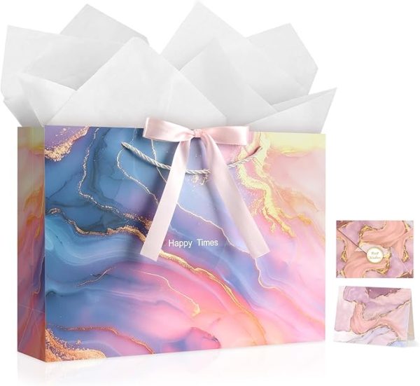 Durable and Practical: Made from premium materials, this gift bag is thick, sturdy, and resistant to tearing. The waterproof and dustproof surface protects your gift, while the reinforced bottom and robust handles ensure easy carrying and stability. A perfect choice for women’s birthday gifts or any occasion that requires both durability and style.