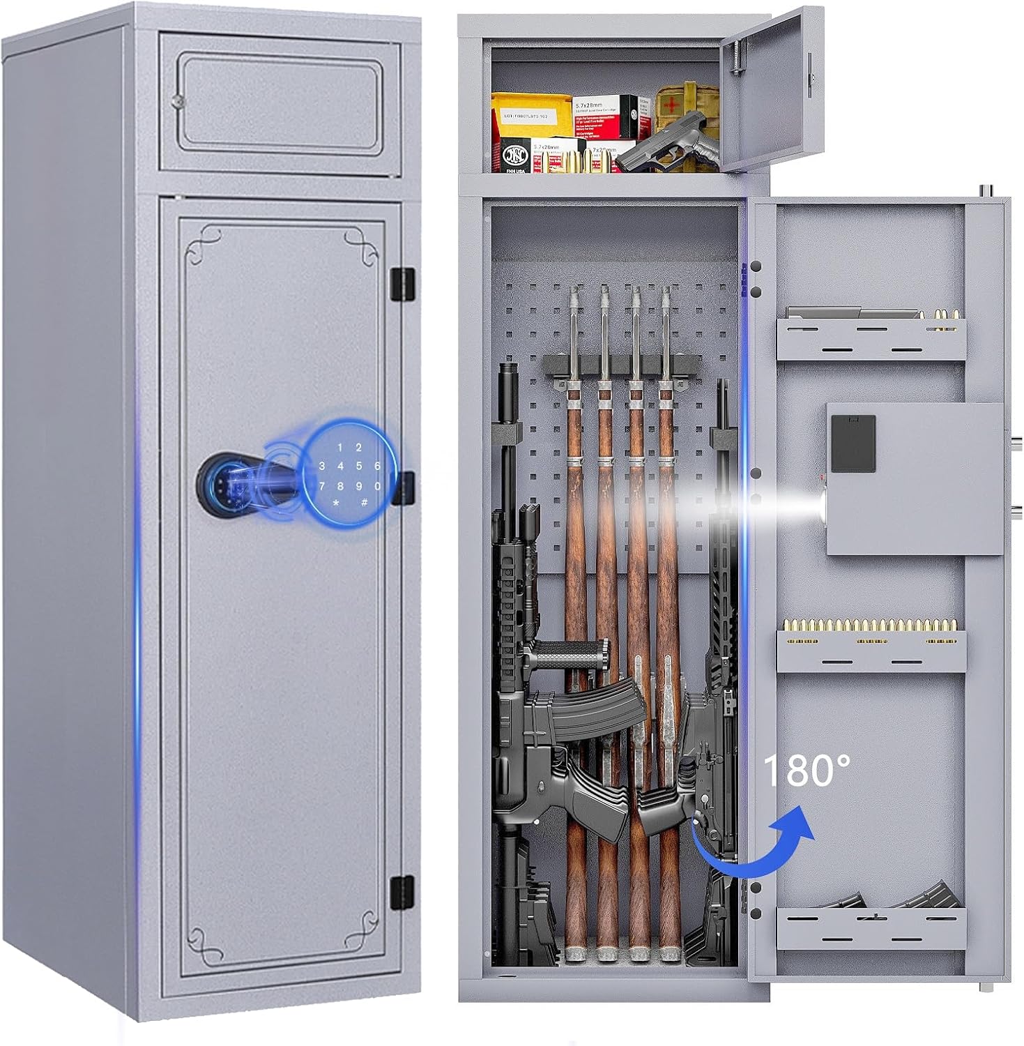 180° Door and LED Sensor Light for Convenient Access: The door opens a full 180°, making it easy to remove long rifles without repositioning. A built-in LED sensor light automatically illuminates the interior when the door opens, ensuring clear visibility in dark areas such as garages or bedrooms.
