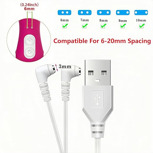 The Universal Magnetic Charger for Massagers and Rechargeable Devices (80cm USB Fast Charging Cable) is a simple and adaptable way to charge many magnetic charging devices. This charger cable can work with pin spacings of 6mm, 7mm, 8mm, 9mm, 10mm, and 12mm. This makes it reliable and adaptable for a wide range of rechargeable electronics.